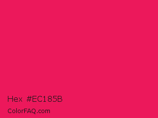 Hex #ec185b Color is a normal rose color and the nearest color is Ruby #e0115f. Hex code #ec185b and RGB value is rgb(236,24,91). In RGB color space, this color is composed of 93% red, 9% green, 36% blue, In CMYK color space, this color is composed of 0% cyan, 90% magenta, 61% yellow , 7% black , In HSL color space, this color has a hue angle of 341° , 85% saturation and 51% lightness.