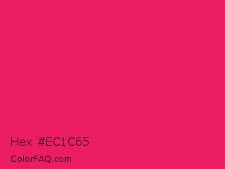 Hex #ec1c65 Color is a normal rose color and the nearest color is Razzmatazz #e3256b. Hex code #ec1c65 and RGB value is rgb(236,28,101). In RGB color space, this color is composed of 93% red, 11% green, 40% blue, In CMYK color space, this color is composed of 0% cyan, 88% magenta, 57% yellow , 7% black , In HSL color space, this color has a hue angle of 339° , 85% saturation and 52% lightness.