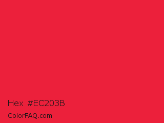 Hex #ec203b Color is a normal red color and the nearest color is Imperial Red #ed2939. Hex code #ec203b and RGB value is rgb(236,32,59). In RGB color space, this color is composed of 93% red, 13% green, 23% blue, In CMYK color space, this color is composed of 0% cyan, 86% magenta, 75% yellow , 7% black , In HSL color space, this color has a hue angle of 352° , 84% saturation and 53% lightness.