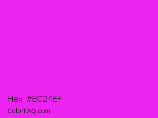 Hex #ec24ef Color is a normal magenta color and the nearest color is Hot Magenta #ff1dce. Hex code #ec24ef and RGB value is rgb(236,36,239). In RGB color space, this color is composed of 93% red, 14% green, 94% blue, In CMYK color space, this color is composed of 1% cyan, 85% magenta, 0% yellow , 6% black , In HSL color space, this color has a hue angle of 299° , 86% saturation and 54% lightness.