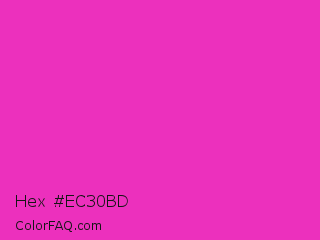 Hex #ec30bd Color is a normal magenta color and the nearest color is Frostbite #e936a7. Hex code #ec30bd and RGB value is rgb(236,48,189). In RGB color space, this color is composed of 93% red, 19% green, 74% blue, In CMYK color space, this color is composed of 0% cyan, 80% magenta, 20% yellow , 7% black , In HSL color space, this color has a hue angle of 315° , 83% saturation and 56% lightness.