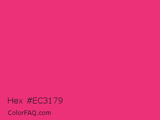 Hex #ec3179 Color is a normal rose color and the nearest color is Cerise Pink #ec3b83. Hex code #ec3179 and RGB value is rgb(236,49,121). In RGB color space, this color is composed of 93% red, 19% green, 47% blue, In CMYK color space, this color is composed of 0% cyan, 79% magenta, 49% yellow , 7% black , In HSL color space, this color has a hue angle of 337° , 83% saturation and 56% lightness.