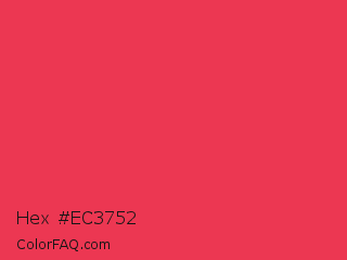 Hex #ec3752 Color is a normal red color and the nearest color is Desire #ea3c53. Hex code #ec3752 and RGB value is rgb(236,55,82). In RGB color space, this color is composed of 93% red, 22% green, 32% blue, In CMYK color space, this color is composed of 0% cyan, 77% magenta, 65% yellow , 7% black , In HSL color space, this color has a hue angle of 351° , 83% saturation and 57% lightness.