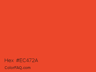 Hex #ec472a Color is a normal red color and the nearest color is Pomegranate #f34723. Hex code #ec472a and RGB value is rgb(236,71,42). In RGB color space, this color is composed of 93% red, 28% green, 16% blue, In CMYK color space, this color is composed of 0% cyan, 70% magenta, 82% yellow , 7% black , In HSL color space, this color has a hue angle of 9° , 84% saturation and 55% lightness.