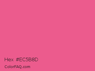 Hex #ec5b8d Color is a light rose color and the nearest color is Violet Red #f75394. Hex code #ec5b8d and RGB value is rgb(236,91,141). In RGB color space, this color is composed of 93% red, 36% green, 55% blue, In CMYK color space, this color is composed of 0% cyan, 61% magenta, 40% yellow , 7% black , In HSL color space, this color has a hue angle of 339° , 79% saturation and 64% lightness.