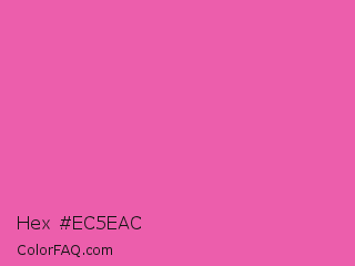 Hex #ec5eac Color is a light magenta color and the nearest color is Brilliant Rose #f653a6. Hex code #ec5eac and RGB value is rgb(236,94,172). In RGB color space, this color is composed of 93% red, 37% green, 67% blue, In CMYK color space, this color is composed of 0% cyan, 60% magenta, 27% yellow , 7% black , In HSL color space, this color has a hue angle of 327° , 79% saturation and 65% lightness.