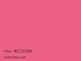 Hex #ec6088 Color is a light rose color and the nearest color is Blush #de5d83. Hex code #ec6088 and RGB value is rgb(236,96,136). In RGB color space, this color is composed of 93% red, 38% green, 53% blue, In CMYK color space, this color is composed of 0% cyan, 59% magenta, 42% yellow , 7% black , In HSL color space, this color has a hue angle of 343° , 79% saturation and 65% lightness.