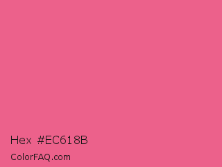 Hex #ec618b Color is a light rose color and the nearest color is Light Crimson #f56991. Hex code #ec618b and RGB value is rgb(236,97,139). In RGB color space, this color is composed of 93% red, 38% green, 55% blue, In CMYK color space, this color is composed of 0% cyan, 59% magenta, 41% yellow , 7% black , In HSL color space, this color has a hue angle of 342° , 79% saturation and 65% lightness.