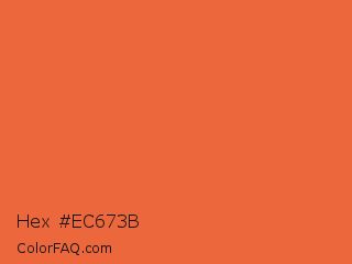 Hex #ec673b Color is a normal color and the nearest color is Deep Carrot Orange #e9692c. Hex code #ec673b and RGB value is rgb(236,103,59). In RGB color space, this color is composed of 93% red, 40% green, 23% blue, In CMYK color space, this color is composed of 0% cyan, 56% magenta, 75% yellow , 7% black , In HSL color space, this color has a hue angle of 15° , 82% saturation and 58% lightness.