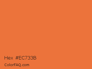Hex #ec733b Color is a normal orange color and the nearest color is Mandarin #f37a48. Hex code #ec733b and RGB value is rgb(236,115,59). In RGB color space, this color is composed of 93% red, 45% green, 23% blue, In CMYK color space, this color is composed of 0% cyan, 51% magenta, 75% yellow , 7% black , In HSL color space, this color has a hue angle of 19° , 82% saturation and 58% lightness.