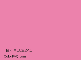 Hex #ec82ac Color is a light rose color and the nearest color is Carissma #ea88a8. Hex code #ec82ac and RGB value is rgb(236,130,172). In RGB color space, this color is composed of 93% red, 51% green, 67% blue, In CMYK color space, this color is composed of 0% cyan, 45% magenta, 27% yellow , 7% black , In HSL color space, this color has a hue angle of 336° , 74% saturation and 72% lightness.