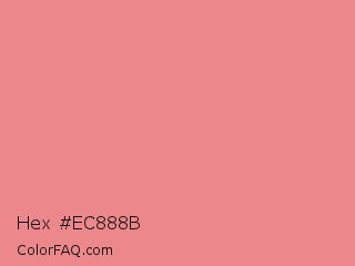 Hex #ec888b Color is a light red color and the nearest color is Light Coral #f08080. Hex code #ec888b and RGB value is rgb(236,136,139). In RGB color space, this color is composed of 93% red, 53% green, 55% blue, In CMYK color space, this color is composed of 0% cyan, 42% magenta, 41% yellow , 7% black , In HSL color space, this color has a hue angle of 358° , 72% saturation and 73% lightness.