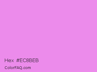 Hex #ec8beb Color is a light magenta color and the nearest color is Lavender Magenta #ee82ee. Hex code #ec8beb and RGB value is rgb(236,139,235). In RGB color space, this color is composed of 93% red, 55% green, 92% blue, In CMYK color space, this color is composed of 0% cyan, 41% magenta, 0% yellow , 7% black , In HSL color space, this color has a hue angle of 301° , 72% saturation and 74% lightness.