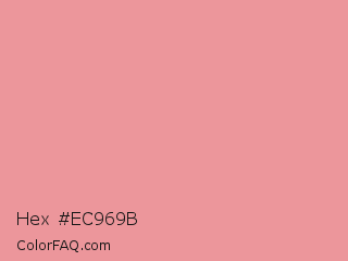 Hex #ec969b Color is a light red color and the nearest color is Sea Pink #ed989e. Hex code #ec969b and RGB value is rgb(236,150,155). In RGB color space, this color is composed of 93% red, 59% green, 61% blue, In CMYK color space, this color is composed of 0% cyan, 36% magenta, 34% yellow , 7% black , In HSL color space, this color has a hue angle of 357° , 69% saturation and 76% lightness.