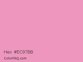 Hex #ec97bb Color is a light rose color and the nearest color is Amaranth Pink #f19cbb. Hex code #ec97bb and RGB value is rgb(236,151,187). In RGB color space, this color is composed of 93% red, 59% green, 73% blue, In CMYK color space, this color is composed of 0% cyan, 36% magenta, 21% yellow , 7% black , In HSL color space, this color has a hue angle of 335° , 69% saturation and 76% lightness.