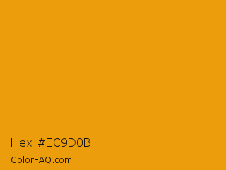 Hex #ec9d0b Color is a normal orange color and the nearest color is Gamboge #e49b0f. Hex code #ec9d0b and RGB value is rgb(236,157,11). In RGB color space, this color is composed of 93% red, 62% green, 4% blue, In CMYK color space, this color is composed of 0% cyan, 33% magenta, 95% yellow , 7% black , In HSL color space, this color has a hue angle of 39° , 91% saturation and 48% lightness.