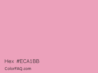 Hex #eca1bb Color is a light rose color and the nearest color is Amaranth Pink #f19cbb. Hex code #eca1bb and RGB value is rgb(236,161,187). In RGB color space, this color is composed of 93% red, 63% green, 73% blue, In CMYK color space, this color is composed of 0% cyan, 32% magenta, 21% yellow , 7% black , In HSL color space, this color has a hue angle of 339° , 66% saturation and 78% lightness.