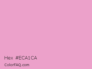 Hex #eca1ca Color is a light magenta color and the nearest color is Kobi #e79fc4. Hex code #eca1ca and RGB value is rgb(236,161,202). In RGB color space, this color is composed of 93% red, 63% green, 79% blue, In CMYK color space, this color is composed of 0% cyan, 32% magenta, 14% yellow , 7% black , In HSL color space, this color has a hue angle of 327° , 66% saturation and 78% lightness.