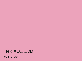 Hex #eca3bb Color is a light rose color and the nearest color is Amaranth Pink #f19cbb. Hex code #eca3bb and RGB value is rgb(236,163,187). In RGB color space, this color is composed of 93% red, 64% green, 73% blue, In CMYK color space, this color is composed of 0% cyan, 31% magenta, 21% yellow , 7% black , In HSL color space, this color has a hue angle of 340° , 66% saturation and 78% lightness.