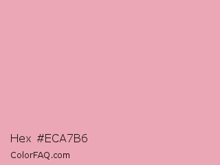 Hex #eca7b6 Color is a light red color and the nearest color is Amaranth Pink #f19cbb. Hex code #eca7b6 and RGB value is rgb(236,167,182). In RGB color space, this color is composed of 93% red, 65% green, 71% blue, In CMYK color space, this color is composed of 0% cyan, 29% magenta, 23% yellow , 7% black , In HSL color space, this color has a hue angle of 347° , 64% saturation and 79% lightness.