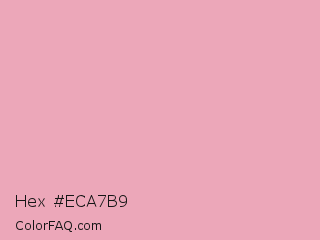 Hex #eca7b9 Color is a light rose color and the nearest color is Amaranth Pink #f19cbb. Hex code #eca7b9 and RGB value is rgb(236,167,185). In RGB color space, this color is composed of 93% red, 65% green, 73% blue, In CMYK color space, this color is composed of 0% cyan, 29% magenta, 22% yellow , 7% black , In HSL color space, this color has a hue angle of 344° , 64% saturation and 79% lightness.