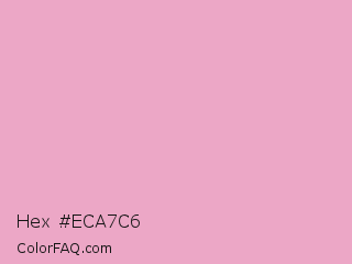 Hex #eca7c6 Color is a light rose color and the nearest color is Kobi #e79fc4. Hex code #eca7c6 and RGB value is rgb(236,167,198). In RGB color space, this color is composed of 93% red, 65% green, 78% blue, In CMYK color space, this color is composed of 0% cyan, 29% magenta, 16% yellow , 7% black , In HSL color space, this color has a hue angle of 333° , 64% saturation and 79% lightness.