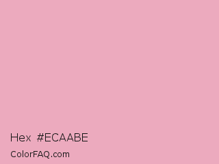 Hex #ecaabe Color is a light rose color and the nearest color is Nadeshiko Pink #f6adc6. Hex code #ecaabe and RGB value is rgb(236,170,190). In RGB color space, this color is composed of 93% red, 67% green, 75% blue, In CMYK color space, this color is composed of 0% cyan, 28% magenta, 19% yellow , 7% black , In HSL color space, this color has a hue angle of 342° , 63% saturation and 80% lightness.