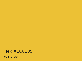 Hex #ecc135 Color is a normal yellow color and the nearest color is Saffron #f4c430. Hex code #ecc135 and RGB value is rgb(236,193,53). In RGB color space, this color is composed of 93% red, 76% green, 21% blue, In CMYK color space, this color is composed of 0% cyan, 18% magenta, 78% yellow , 7% black , In HSL color space, this color has a hue angle of 46° , 83% saturation and 57% lightness.