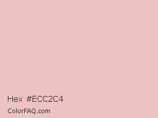 Hex #ecc2c4 Color is a very light red color and the nearest color is Beauty Bush #eec1be. Hex code #ecc2c4 and RGB value is rgb(236,194,196). In RGB color space, this color is composed of 93% red, 76% green, 77% blue, In CMYK color space, this color is composed of 0% cyan, 18% magenta, 17% yellow , 7% black , In HSL color space, this color has a hue angle of 357° , 53% saturation and 84% lightness.
