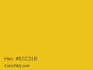 Hex #ecc31b Color is a normal yellow color and the nearest color is Deep Lemon #f5c71a. Hex code #ecc31b and RGB value is rgb(236,195,27). In RGB color space, this color is composed of 93% red, 76% green, 11% blue, In CMYK color space, this color is composed of 0% cyan, 17% magenta, 89% yellow , 7% black , In HSL color space, this color has a hue angle of 48° , 85% saturation and 52% lightness.
