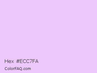 Hex #ecc7fa Color is a very light purple color and the nearest color is French Lilac #ecc7ee. Hex code #ecc7fa and RGB value is rgb(236,199,250). In RGB color space, this color is composed of 93% red, 78% green, 98% blue, In CMYK color space, this color is composed of 6% cyan, 20% magenta, 0% yellow , 2% black , In HSL color space, this color has a hue angle of 284° , 84% saturation and 88% lightness.