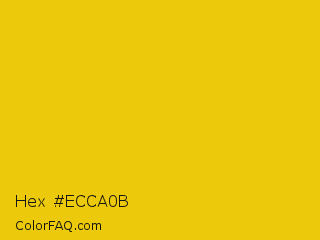 Hex #ecca0b Color is a normal yellow color and the nearest color is Citrine #e4d00a. Hex code #ecca0b and RGB value is rgb(236,202,11). In RGB color space, this color is composed of 93% red, 79% green, 4% blue, In CMYK color space, this color is composed of 0% cyan, 14% magenta, 95% yellow , 7% black , In HSL color space, this color has a hue angle of 51° , 91% saturation and 48% lightness.