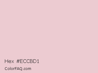 Hex #eccbd1 Color is a very light red color and the nearest color is Oyster Pink #e9cecd. Hex code #eccbd1 and RGB value is rgb(236,203,209). In RGB color space, this color is composed of 93% red, 80% green, 82% blue, In CMYK color space, this color is composed of 0% cyan, 14% magenta, 11% yellow , 7% black , In HSL color space, this color has a hue angle of 349° , 46% saturation and 86% lightness.