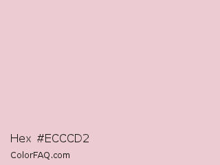 Hex #ecccd2 Color is a very light red color and the nearest color is Oyster Pink #e9cecd. Hex code #ecccd2 and RGB value is rgb(236,204,210). In RGB color space, this color is composed of 93% red, 80% green, 82% blue, In CMYK color space, this color is composed of 0% cyan, 14% magenta, 11% yellow , 7% black , In HSL color space, this color has a hue angle of 349° , 46% saturation and 86% lightness.