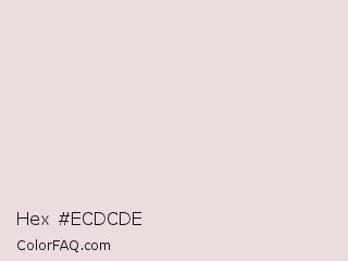 Hex #ecdcde Color is a very light red color and the nearest color is Bizarre #eededa. Hex code #ecdcde and RGB value is rgb(236,220,222). In RGB color space, this color is composed of 93% red, 86% green, 87% blue, In CMYK color space, this color is composed of 0% cyan, 7% magenta, 6% yellow , 7% black , In HSL color space, this color has a hue angle of 353° , 30% saturation and 89% lightness.