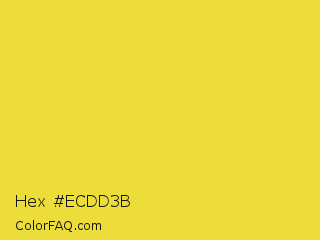 Hex #ecdd3b Color is a normal yellow color and the nearest color is Sandstorm #ecd540. Hex code #ecdd3b and RGB value is rgb(236,221,59). In RGB color space, this color is composed of 93% red, 87% green, 23% blue, In CMYK color space, this color is composed of 0% cyan, 6% magenta, 75% yellow , 7% black , In HSL color space, this color has a hue angle of 55° , 82% saturation and 58% lightness.