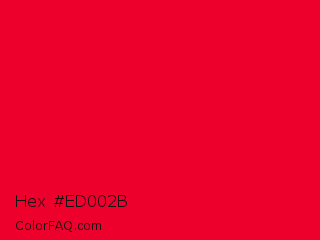 Hex #ed002b Color is a normal red color and the nearest color is Spanish Red #e60026. Hex code #ed002b and RGB value is rgb(237,0,43). In RGB color space, this color is composed of 93% red, 0% green, 17% blue, In CMYK color space, this color is composed of 0% cyan, 100% magenta, 82% yellow , 7% black , In HSL color space, this color has a hue angle of 349° , 100% saturation and 46% lightness.