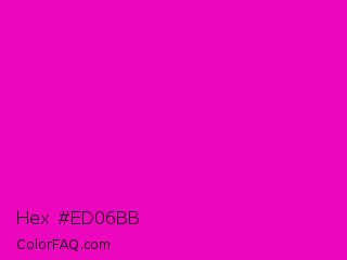 Hex #ed06bb Color is a normal magenta color and the nearest color is Shocking Pink #fc0fc0. Hex code #ed06bb and RGB value is rgb(237,6,187). In RGB color space, this color is composed of 93% red, 2% green, 73% blue, In CMYK color space, this color is composed of 0% cyan, 97% magenta, 21% yellow , 7% black , In HSL color space, this color has a hue angle of 313° , 95% saturation and 48% lightness.