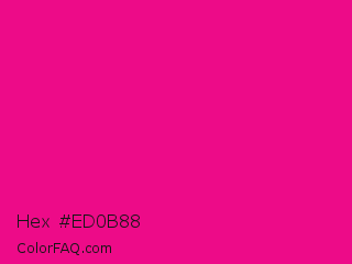 Hex #ed0b88 Color is a normal magenta color and the nearest color is Mexican Pink #e4007c. Hex code #ed0b88 and RGB value is rgb(237,11,136). In RGB color space, this color is composed of 93% red, 4% green, 53% blue, In CMYK color space, this color is composed of 0% cyan, 95% magenta, 43% yellow , 7% black , In HSL color space, this color has a hue angle of 327° , 91% saturation and 49% lightness.
