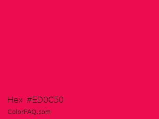 Hex #ed0c50 Color is a normal rose color and the nearest color is Razzmatazz Crayola #e30b5c. Hex code #ed0c50 and RGB value is rgb(237,12,80). In RGB color space, this color is composed of 93% red, 5% green, 31% blue, In CMYK color space, this color is composed of 0% cyan, 95% magenta, 66% yellow , 7% black , In HSL color space, this color has a hue angle of 342° , 90% saturation and 49% lightness.