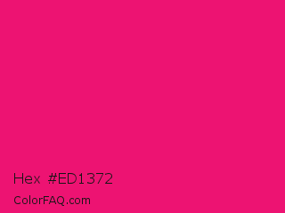 Hex #ed1372 Color is a normal rose color and the nearest color is Razzmatazz #e3256b. Hex code #ed1372 and RGB value is rgb(237,19,114). In RGB color space, this color is composed of 93% red, 7% green, 45% blue, In CMYK color space, this color is composed of 0% cyan, 92% magenta, 52% yellow , 7% black , In HSL color space, this color has a hue angle of 334° , 86% saturation and 50% lightness.