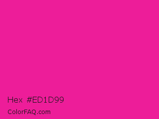 Hex #ed1d99 Color is a normal magenta color and the nearest color is Barbie Pink #e0218a. Hex code #ed1d99 and RGB value is rgb(237,29,153). In RGB color space, this color is composed of 93% red, 11% green, 60% blue, In CMYK color space, this color is composed of 0% cyan, 88% magenta, 35% yellow , 7% black , In HSL color space, this color has a hue angle of 324° , 85% saturation and 52% lightness.