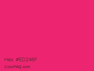 Hex #ed246f Color is a normal rose color and the nearest color is Razzmatazz #e3256b. Hex code #ed246f and RGB value is rgb(237,36,111). In RGB color space, this color is composed of 93% red, 14% green, 44% blue, In CMYK color space, this color is composed of 0% cyan, 85% magenta, 53% yellow , 7% black , In HSL color space, this color has a hue angle of 338° , 85% saturation and 54% lightness.