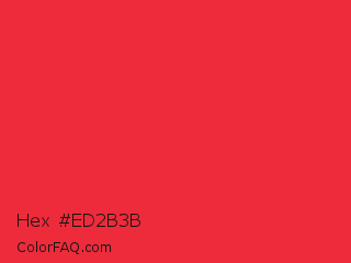 Hex #ed2b3b Color is a normal red color and the nearest color is Imperial Red #ed2939. Hex code #ed2b3b and RGB value is rgb(237,43,59). In RGB color space, this color is composed of 93% red, 17% green, 23% blue, In CMYK color space, this color is composed of 0% cyan, 82% magenta, 75% yellow , 7% black , In HSL color space, this color has a hue angle of 355° , 84% saturation and 55% lightness.