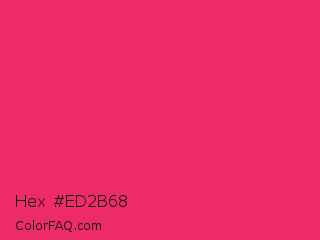 Hex #ed2b68 Color is a normal rose color and the nearest color is Razzmatazz #e3256b. Hex code #ed2b68 and RGB value is rgb(237,43,104). In RGB color space, this color is composed of 93% red, 17% green, 41% blue, In CMYK color space, this color is composed of 0% cyan, 82% magenta, 56% yellow , 7% black , In HSL color space, this color has a hue angle of 341° , 84% saturation and 55% lightness.