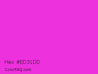 Hex #ed31dd Color is a normal magenta color and the nearest color is Razzle Dazzle Rose #ff33cc. Hex code #ed31dd and RGB value is rgb(237,49,221). In RGB color space, this color is composed of 93% red, 19% green, 87% blue, In CMYK color space, this color is composed of 0% cyan, 79% magenta, 7% yellow , 7% black , In HSL color space, this color has a hue angle of 305° , 84% saturation and 56% lightness.