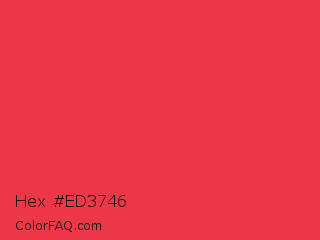 Hex #ed3746 Color is a normal red color and the nearest color is Desire #ea3c53. Hex code #ed3746 and RGB value is rgb(237,55,70). In RGB color space, this color is composed of 93% red, 22% green, 27% blue, In CMYK color space, this color is composed of 0% cyan, 77% magenta, 70% yellow , 7% black , In HSL color space, this color has a hue angle of 355° , 83% saturation and 57% lightness.