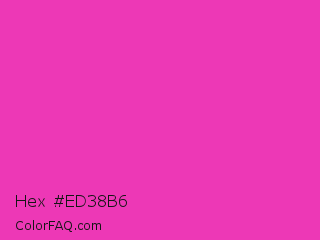 Hex #ed38b6 Color is a normal magenta color and the nearest color is Frostbite #e936a7. Hex code #ed38b6 and RGB value is rgb(237,56,182). In RGB color space, this color is composed of 93% red, 22% green, 71% blue, In CMYK color space, this color is composed of 0% cyan, 76% magenta, 23% yellow , 7% black , In HSL color space, this color has a hue angle of 318° , 83% saturation and 57% lightness.