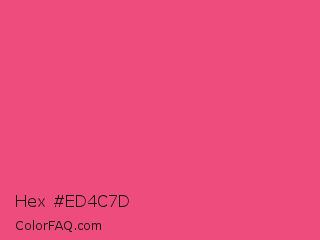 Hex #ed4c7d Color is a light rose color and the nearest color is Dark Pink #e75480. Hex code #ed4c7d and RGB value is rgb(237,76,125). In RGB color space, this color is composed of 93% red, 30% green, 49% blue, In CMYK color space, this color is composed of 0% cyan, 68% magenta, 47% yellow , 7% black , In HSL color space, this color has a hue angle of 342° , 82% saturation and 61% lightness.