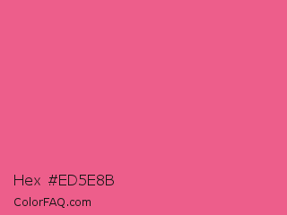 Hex #ed5e8b Color is a light rose color and the nearest color is Light Crimson #f56991. Hex code #ed5e8b and RGB value is rgb(237,94,139). In RGB color space, this color is composed of 93% red, 37% green, 55% blue, In CMYK color space, this color is composed of 0% cyan, 60% magenta, 41% yellow , 7% black , In HSL color space, this color has a hue angle of 341° , 80% saturation and 65% lightness.